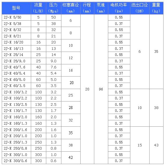 2J-X系列柱塞式计量泵--参数: