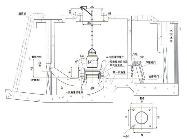 4、封闭进水流道的混凝土预制井筒式安装及尺寸
