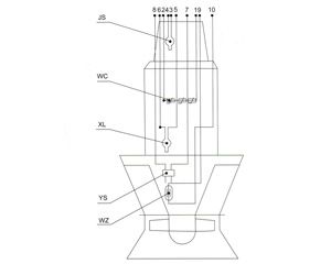 ![]() 潜水流轴泵、混流泵内部传感器布置图 | 传感器输送信号由潜水电泵保护器接受。该保护器对每一个输出信号,包括开关量或模拟量分别输出一个开关信号,并在保护器上显示出报警闪光信号。 |