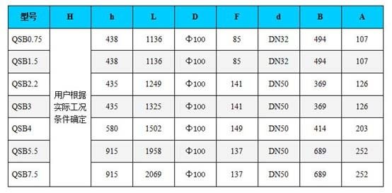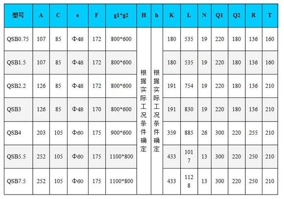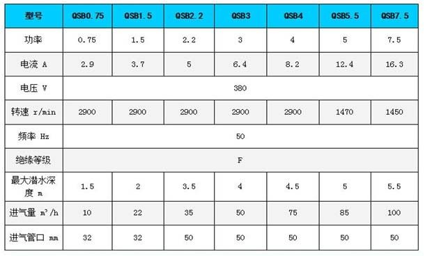 注:表中进气量及增氧能力是在标准试验条件下(20°C水温,气压101.325kPa),曝气机潜水深度3m,试验介质为清水。在中度污水中,增气能力可按系数0.85作为设计依据。